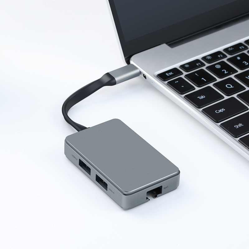 Get 2 USB- A data ports, 1 USB- C Power Delivery charging port, 1 USB- C data port, 1 RJ45 port- all in one hub