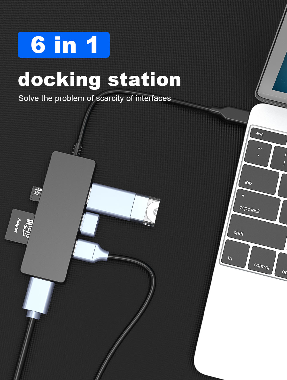6 in 1 USB3.1/Type-C to HDMI+USB3.0+2*USB2.0+SD/TF HUB