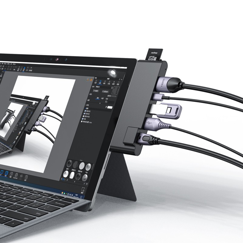 7 in 1 USB3.0 Type-C3.0 to HDMI USB3.0 Type-C SD/TF Docking station for Surface Pro 7