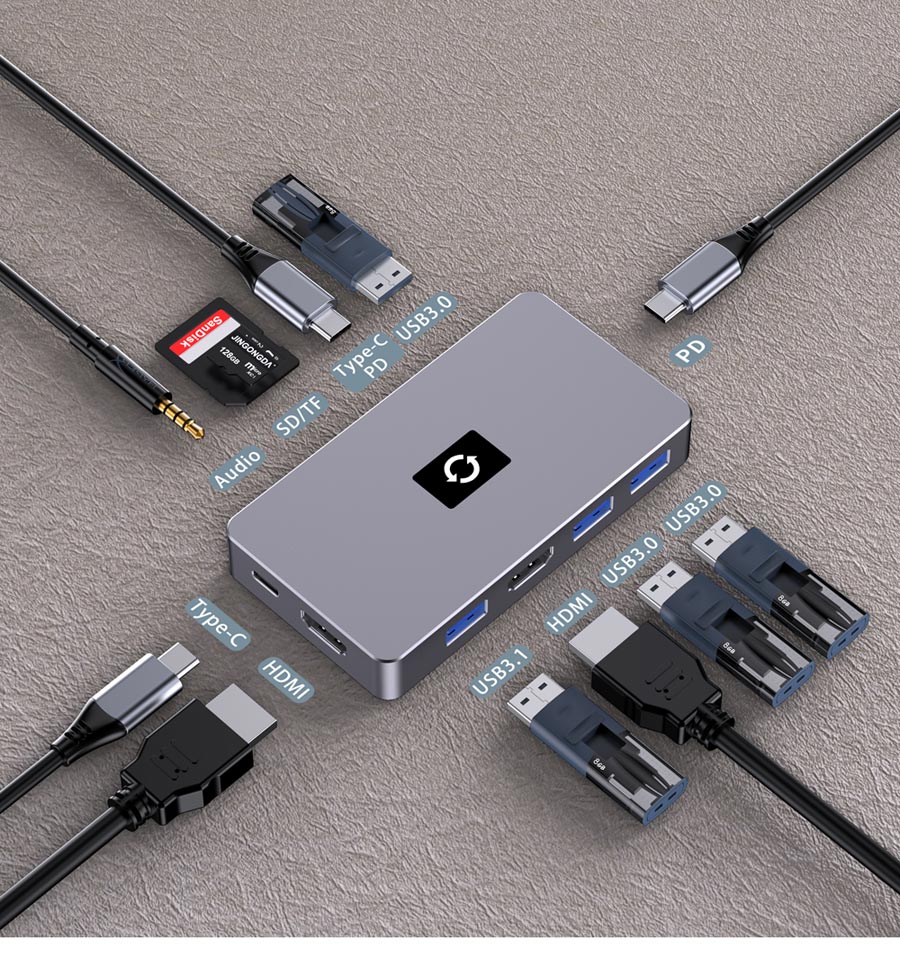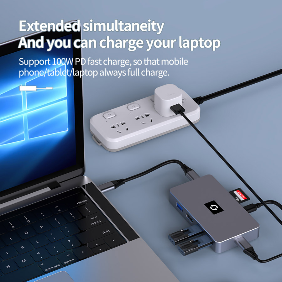 11 in 1 Type-c Hub Docking station, supporting 100W PD fast charging